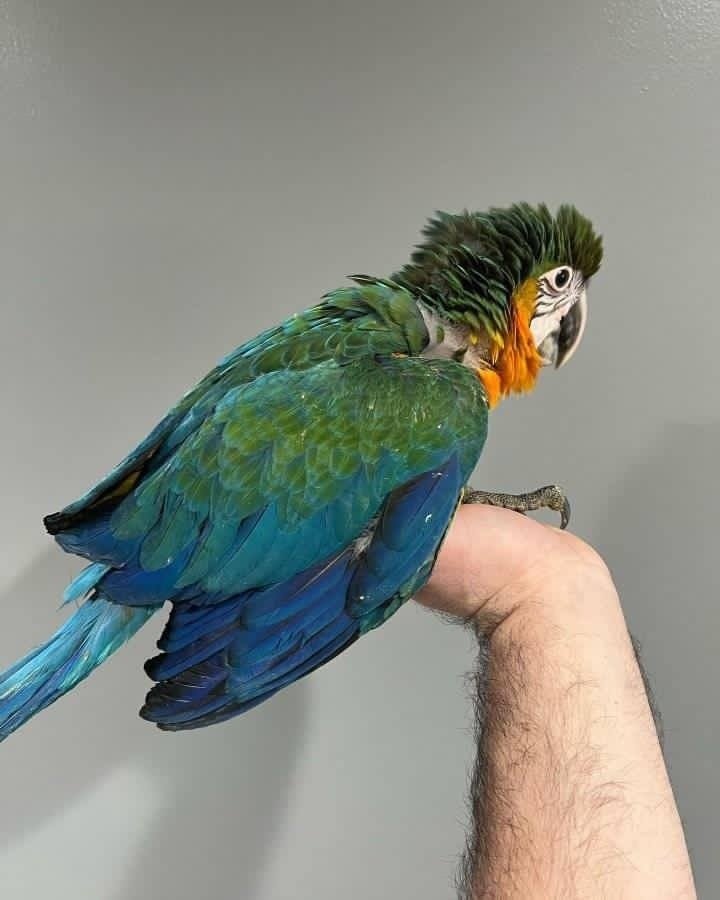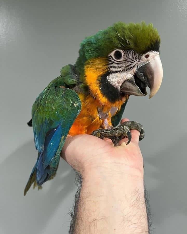 Around the house, these macaws can be as friendly as a dog. They enjoy being near their owners and will often wander around looking for someone who can give them attention. Their sweet personality is sure to make you drop whatever you’re doing for a little play time. They can also be quite content on their perch, watching the activity around them.