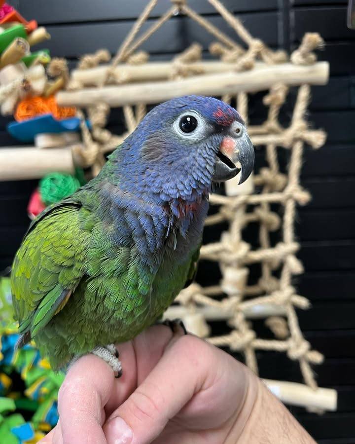 Their bright feathers are also used by native tribespeople in New Guinea as decorations. Originating in the Solomon Islands, this bird is prized for its stunning appearance and great pet quality. A little harder to find than some of the other parrots of this size. The males are bright green, with bright candy corn-colored beaks and blue or red tail and wing feathers. The average weight of the adult male Eclectus parrots for sale is about 1 pound and 14 inches when grown. The females are red headed and blue-breasted, with black beaks.